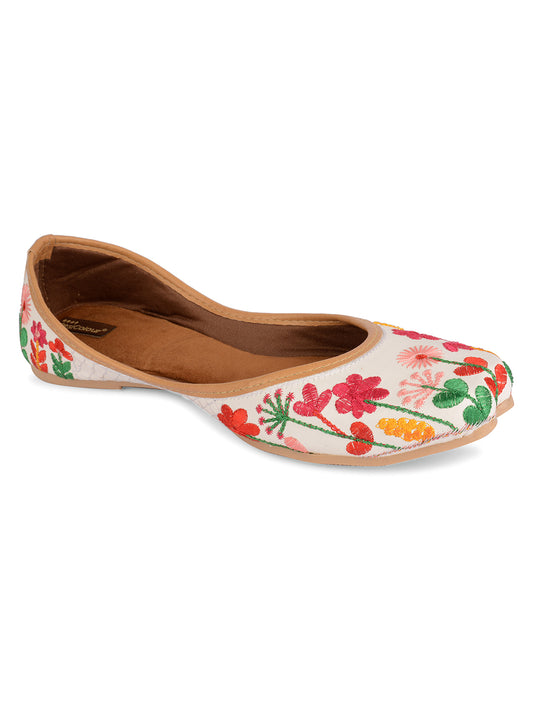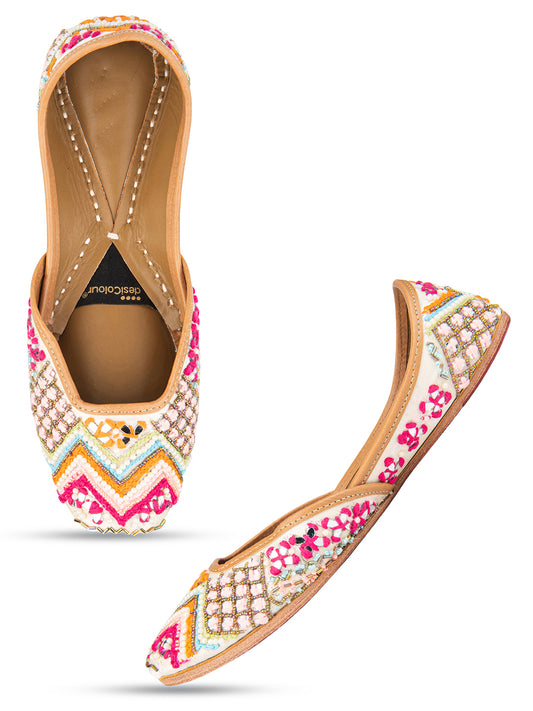 Women Pink Ethnic Mojaris with Embroidered Flats