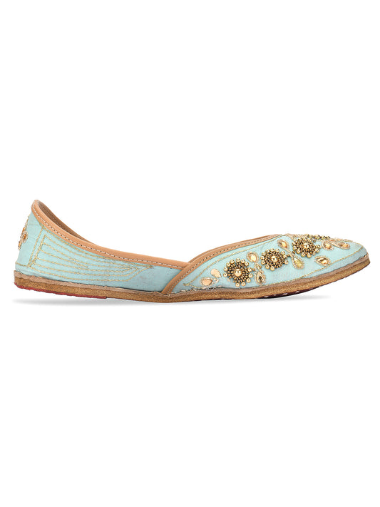 Women Blue Embellished Leather Ethnic Mojaris