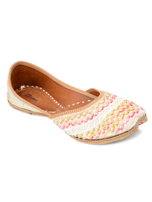 Women Beige Embellished Ethnic Mojaris Flats