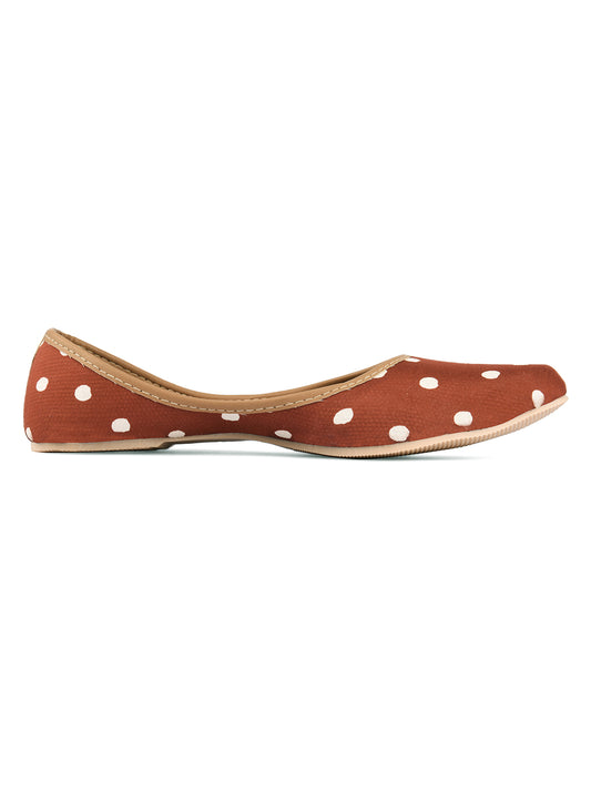 Women Peach-Coloured Printed Leather Ethnic Mojaris Flats