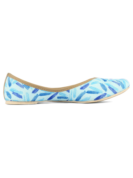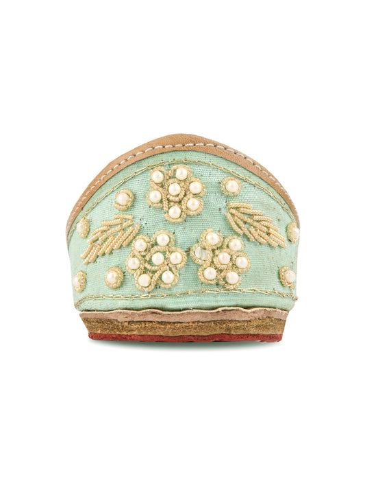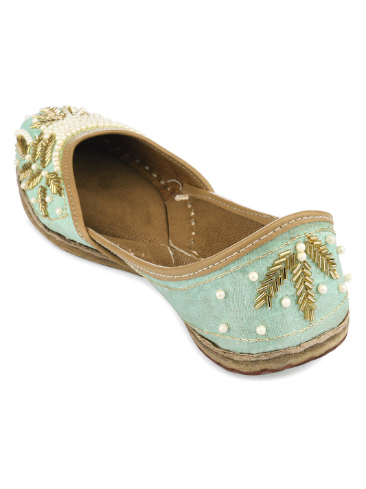 Women Sea Green Embellished Leather Ethnic Mojaris Flats
