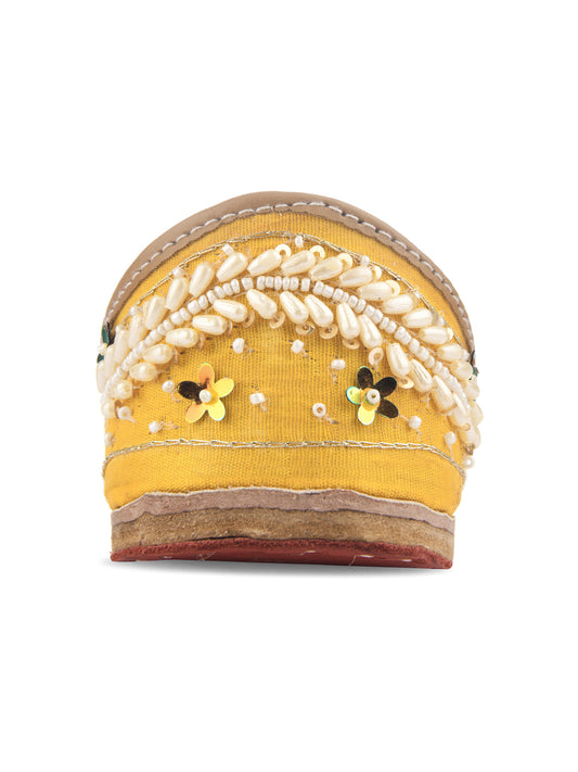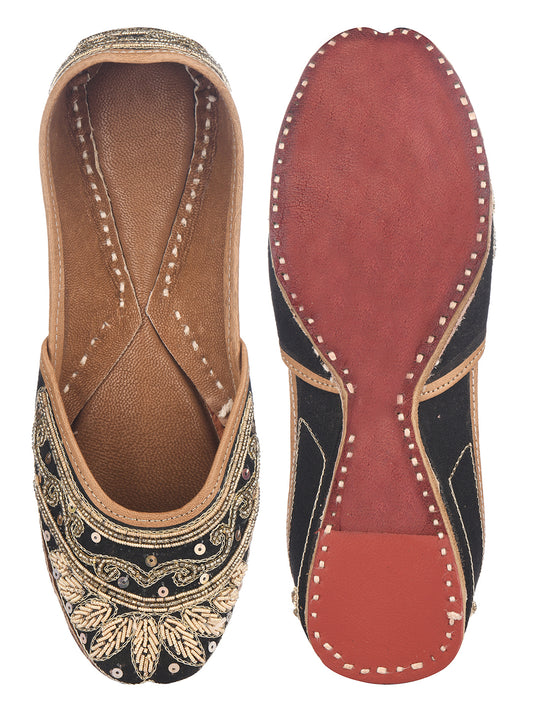 Women Green Embellished Leather Ethnic Mojaris Flats
