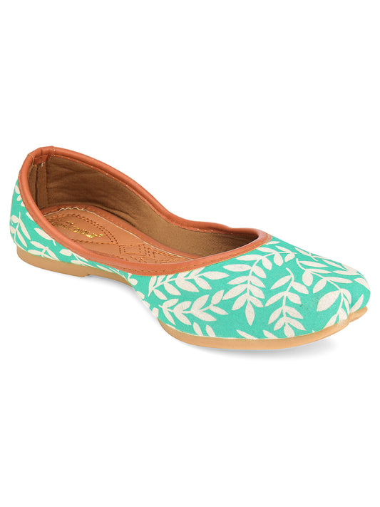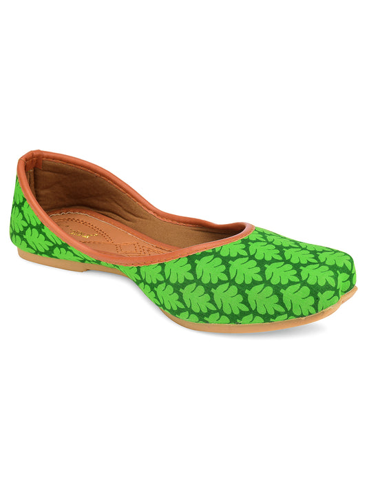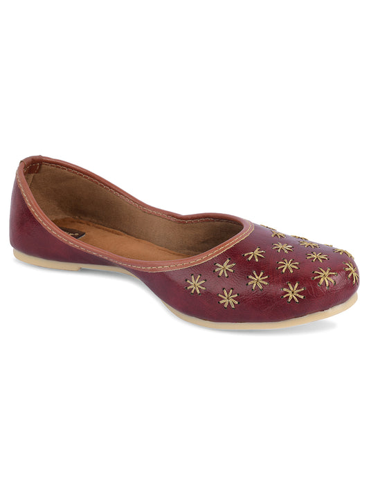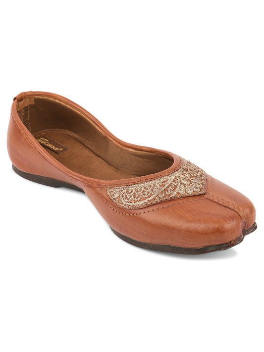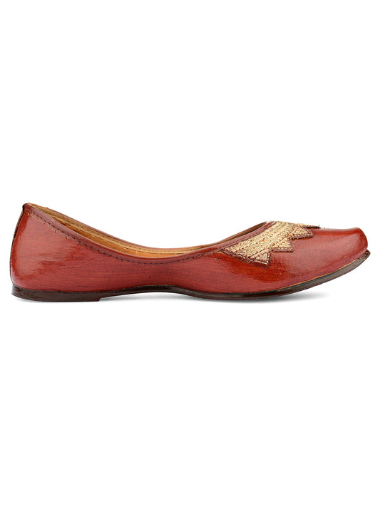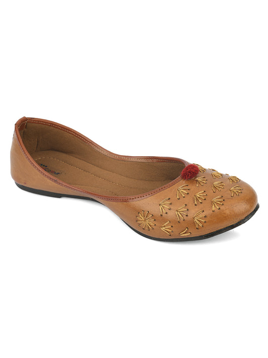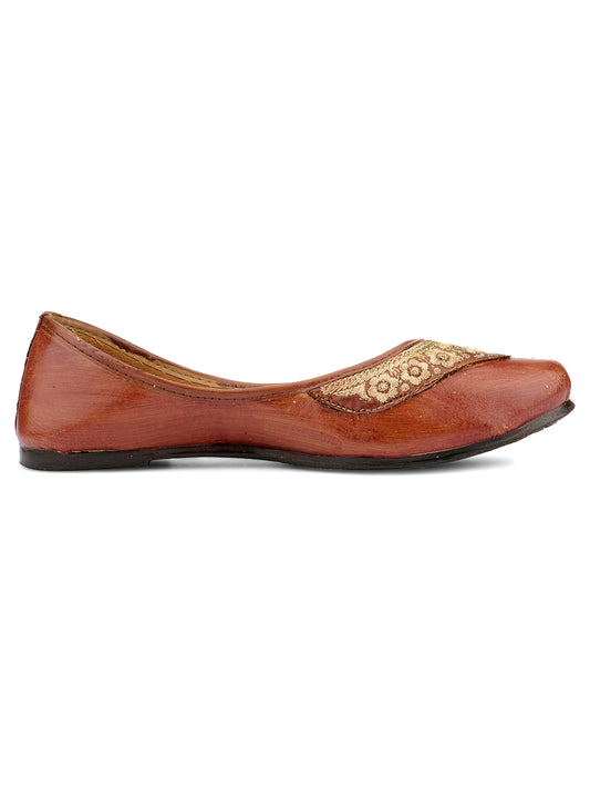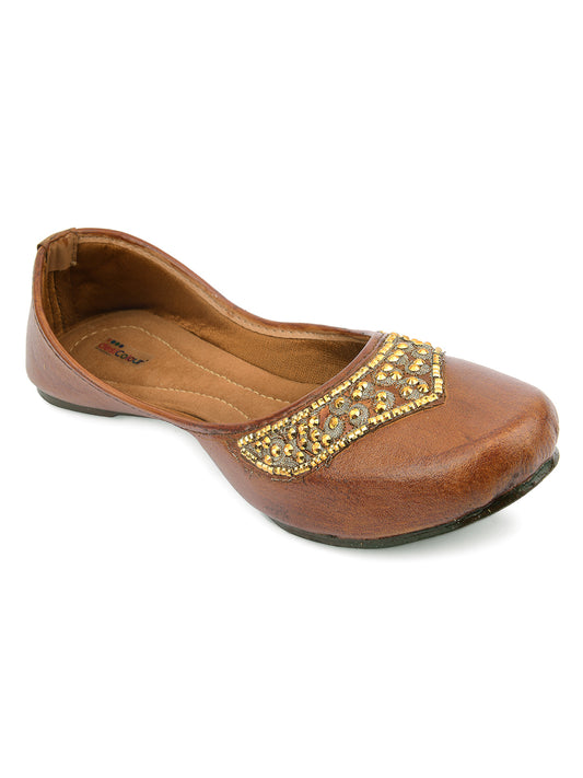 Women Brown Embellished Leather Ethnic Mojaris Flats