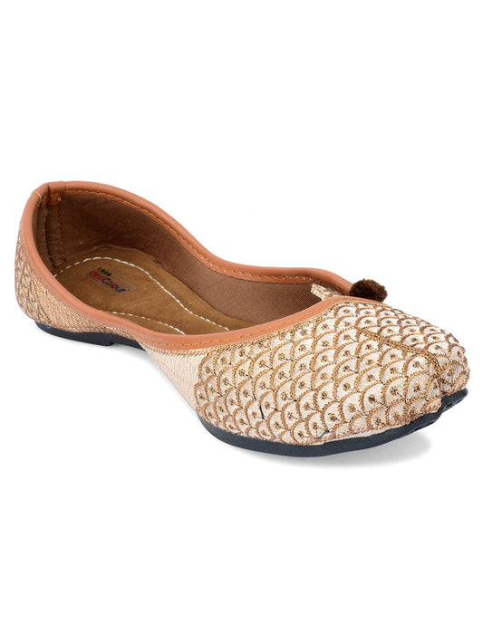 Women Peach-Coloured Ethnic Ballerinas with Embroidered Flats