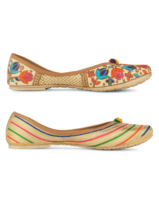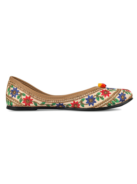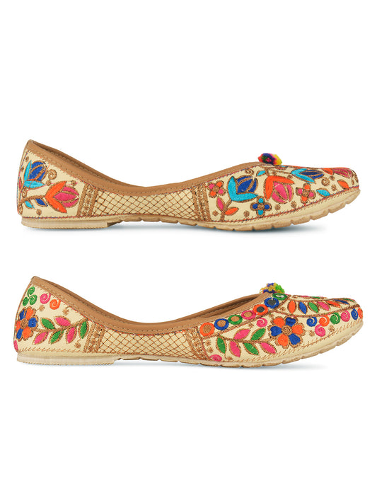 Women Multicoloured Embroidered Ethnic Mojaris Flats