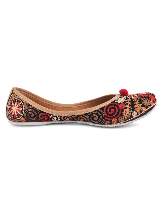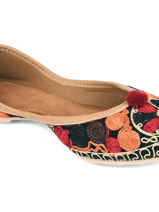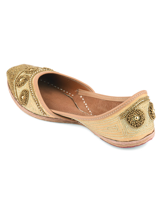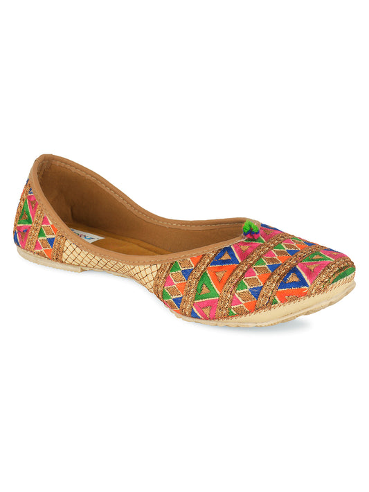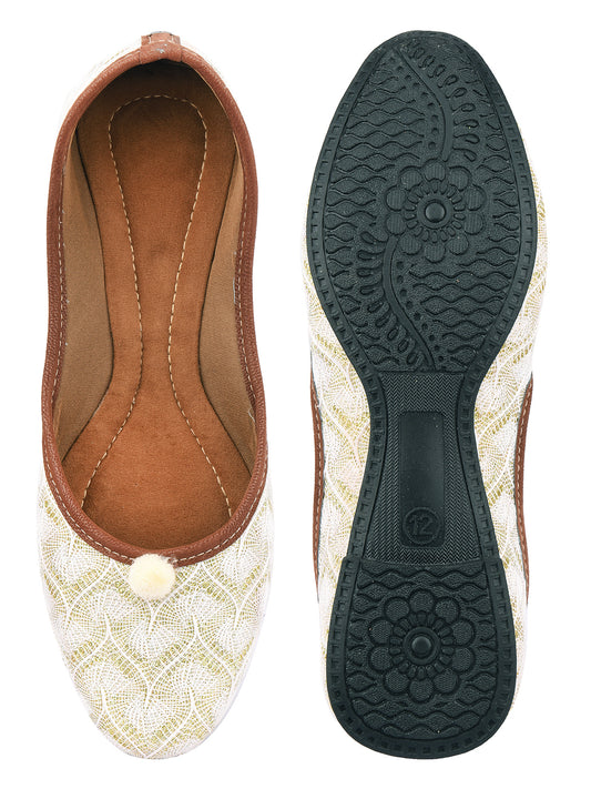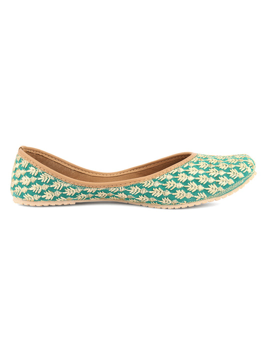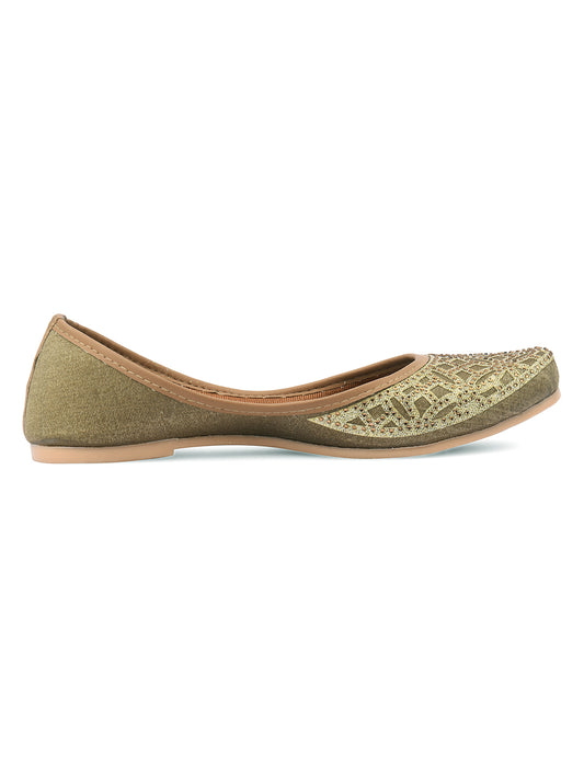 Women Olive Green Embellished Ethnic Mojaris Flats