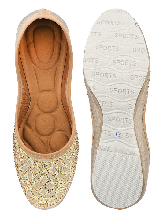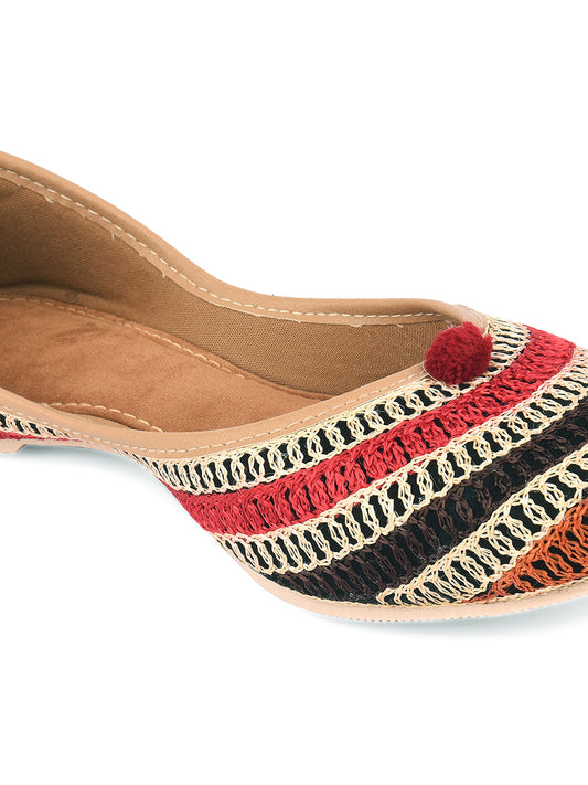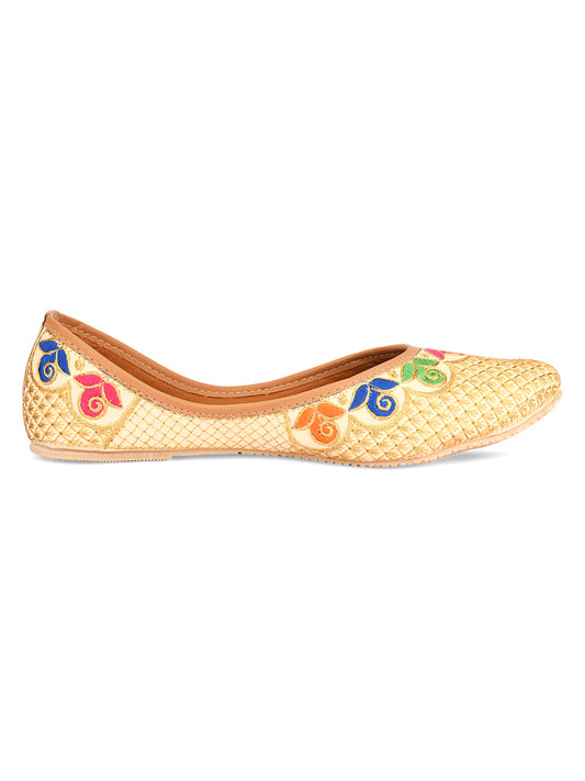 Women Pink Gold-Toned Woven Design Velvet Mojaris