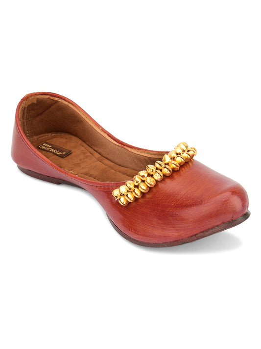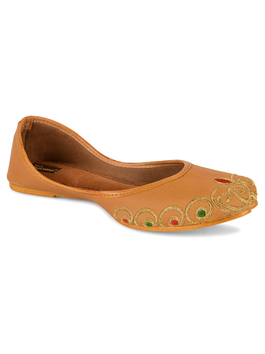 Women Tan Embellished Ethnic Comfy Punjabi Jutti