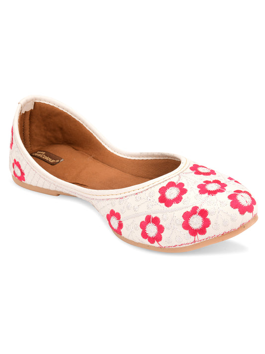 Women Off White Embellished Ethnic Comfy Punjabi Jutti