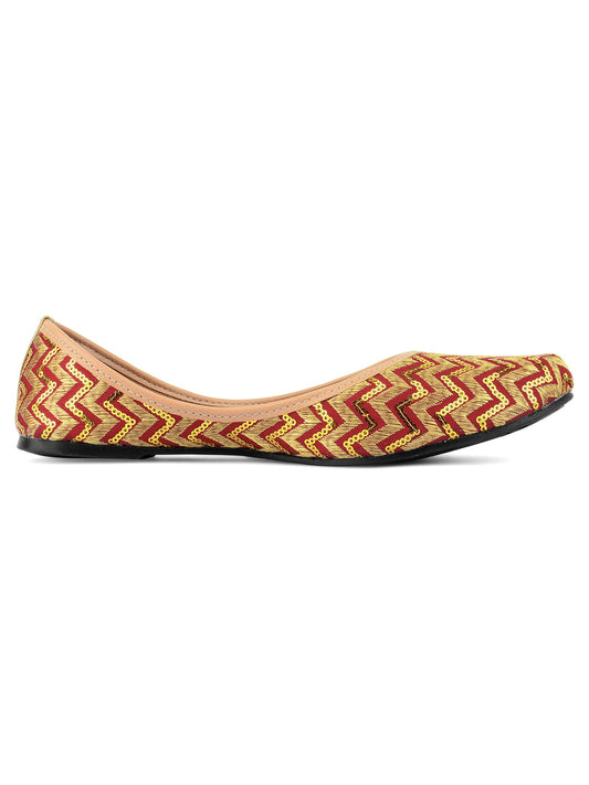 Women Maroon Ethnic Mojaris Flats