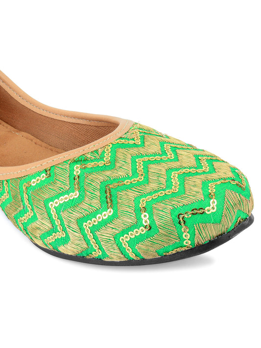 Women Green Ethnic Punjabi Jutti