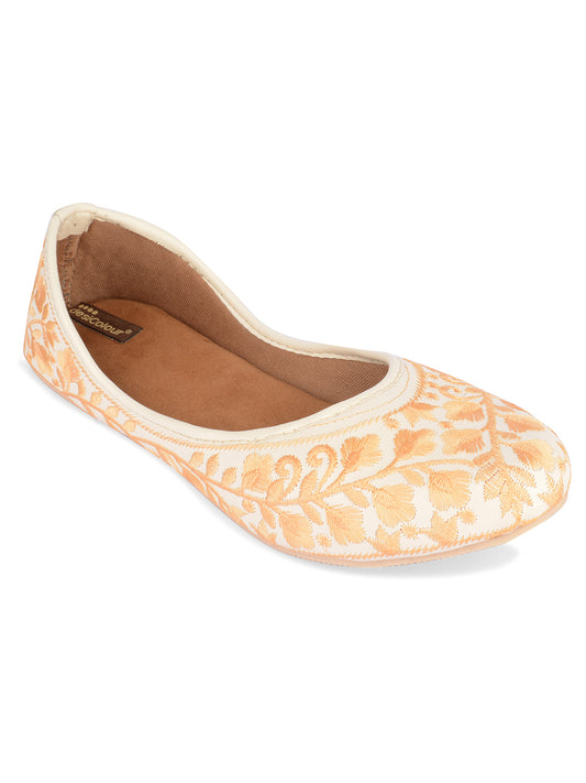 Women Olive Green Embellished Ethnic Mojaris Flats