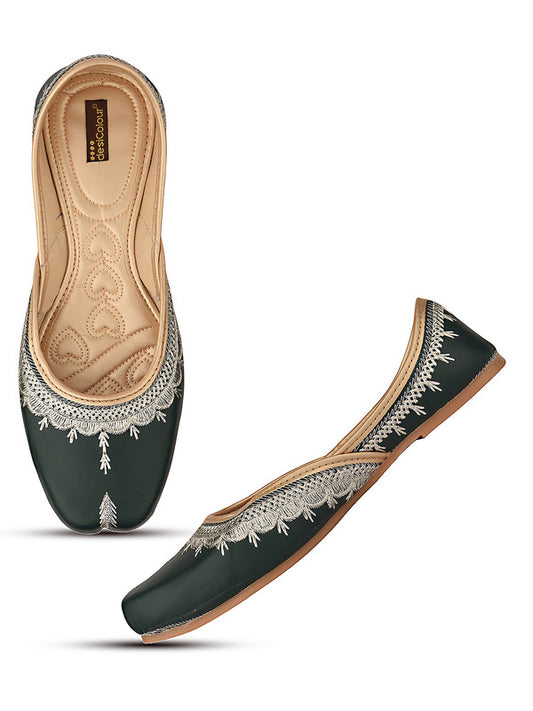 Women Green Ethnic Punjabi Jutti