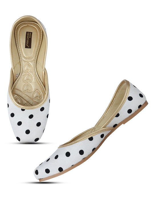 Women White Ethnic Mojaris Flats