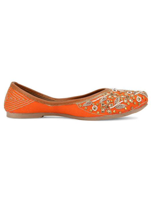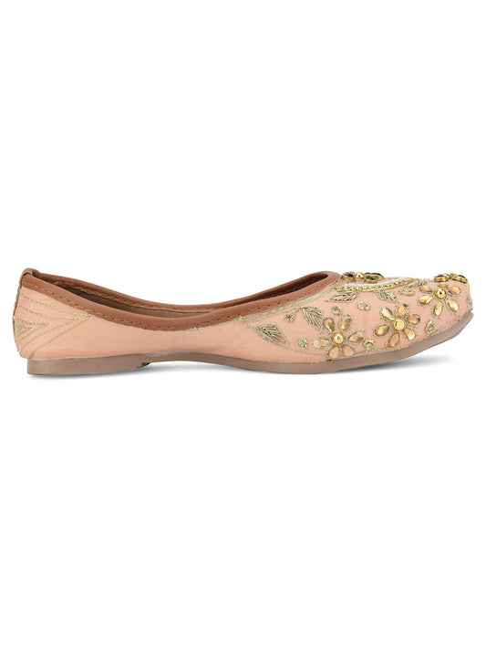 Women Peach-Coloured Embellished Ethnic Mojaris Flats