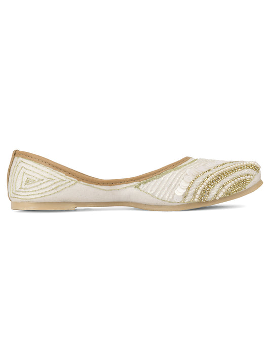 Women Off-White Gold-Toned Embellished Ethnic Mojaris
