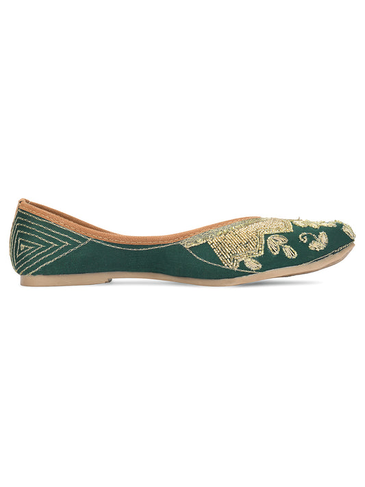 Women Gold-Toned Embellished Leather Ethnic Mojaris Flats