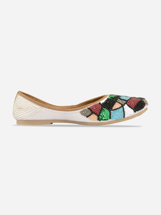 Women Off White Ethnic Mojaris With Ethnic Embellishments