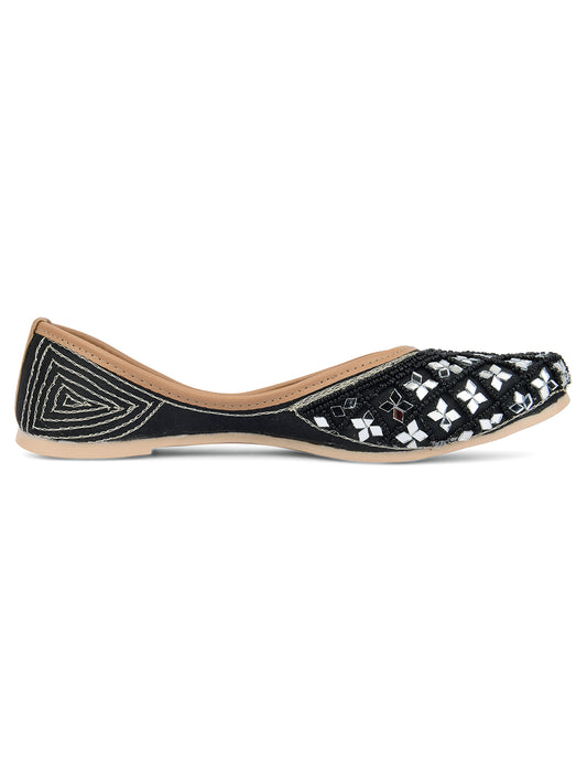 Women Multicoloured Embellished Leather Ethnic Mojaris Flats