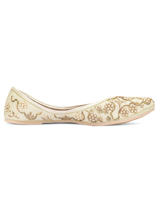 Women Gold-Toned Embellished Leather Ethnic Mojaris Flats