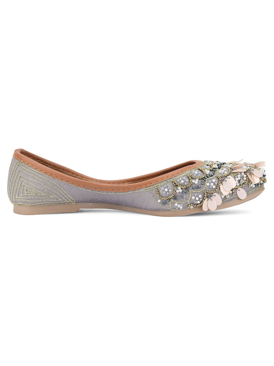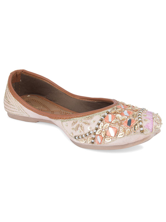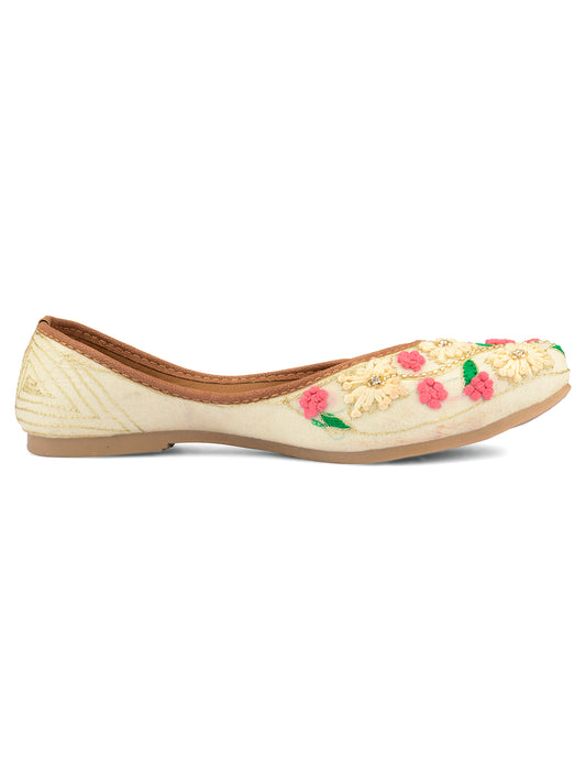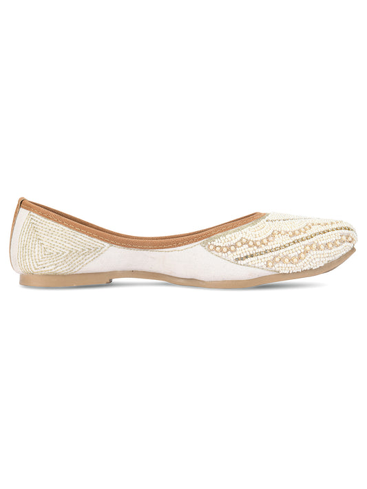 Women Cream-Coloured Embellished Ethnic Mojaris