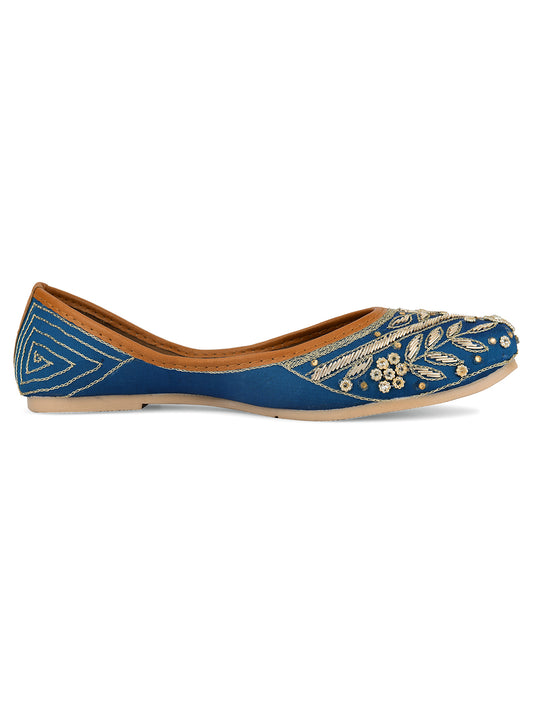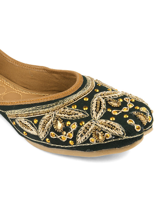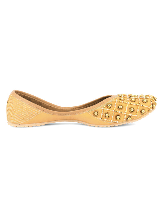 Women Gold-Toned Embellished Leather Ethnic Mojaris Flats