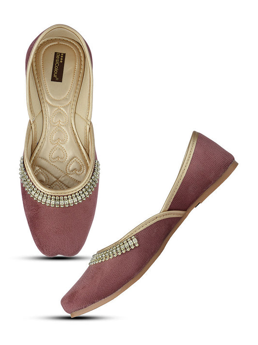 Women Peach-Coloured Gold-Toned Embellished Ethnic Mojaris Flats