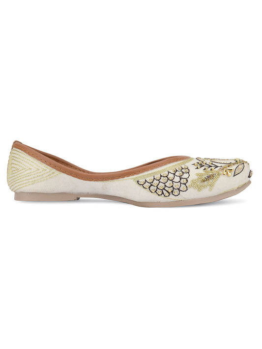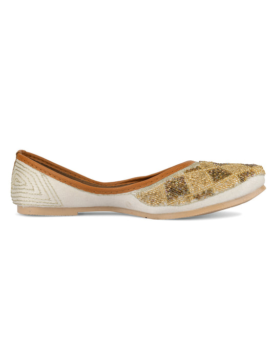 Women Off-White Gold-Toned Embellished Ethnic Mojaris