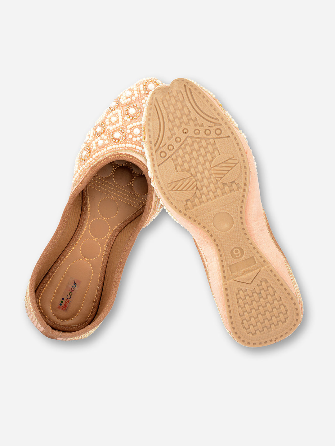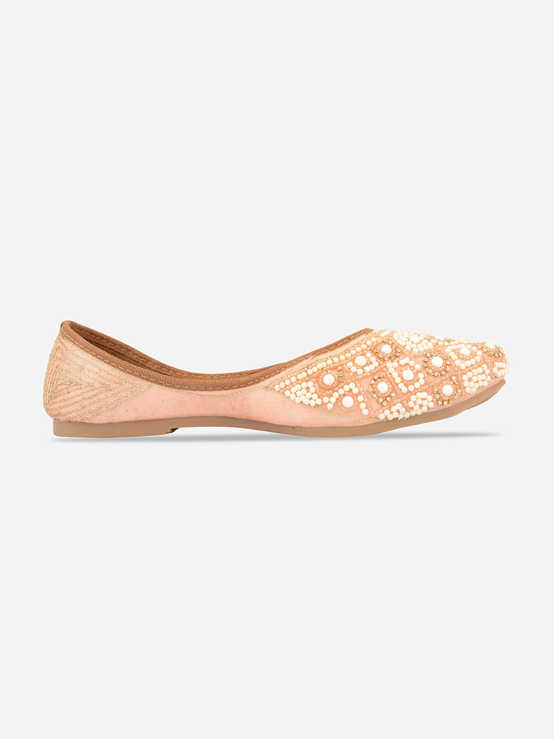 Women Peach-Coloured Embellished Leather Ethnic Ballerinas Flats